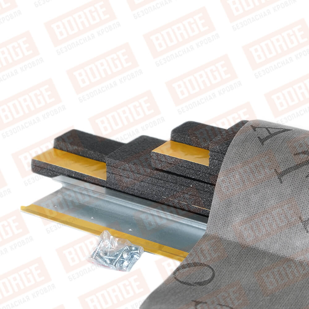 Комплект гидро- и теплоизоляции для быстрой и надежной установки мансардного окна. Включает: 1) теплоизоляционный контур для утепления между окном и кровлей; 2) гидроизоляционный фартук, для соединения с гидроизоляцией кровли; 3) усиленный дренажный желоб, который отводит воду от окна и комплект специальных накладок.