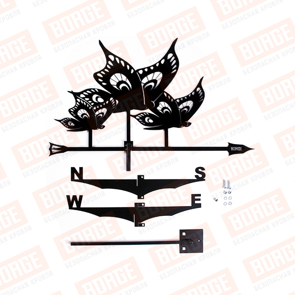 Флюгер BORGE Бабочки, 700х410мм, чёрный (RAL 9005 matt)