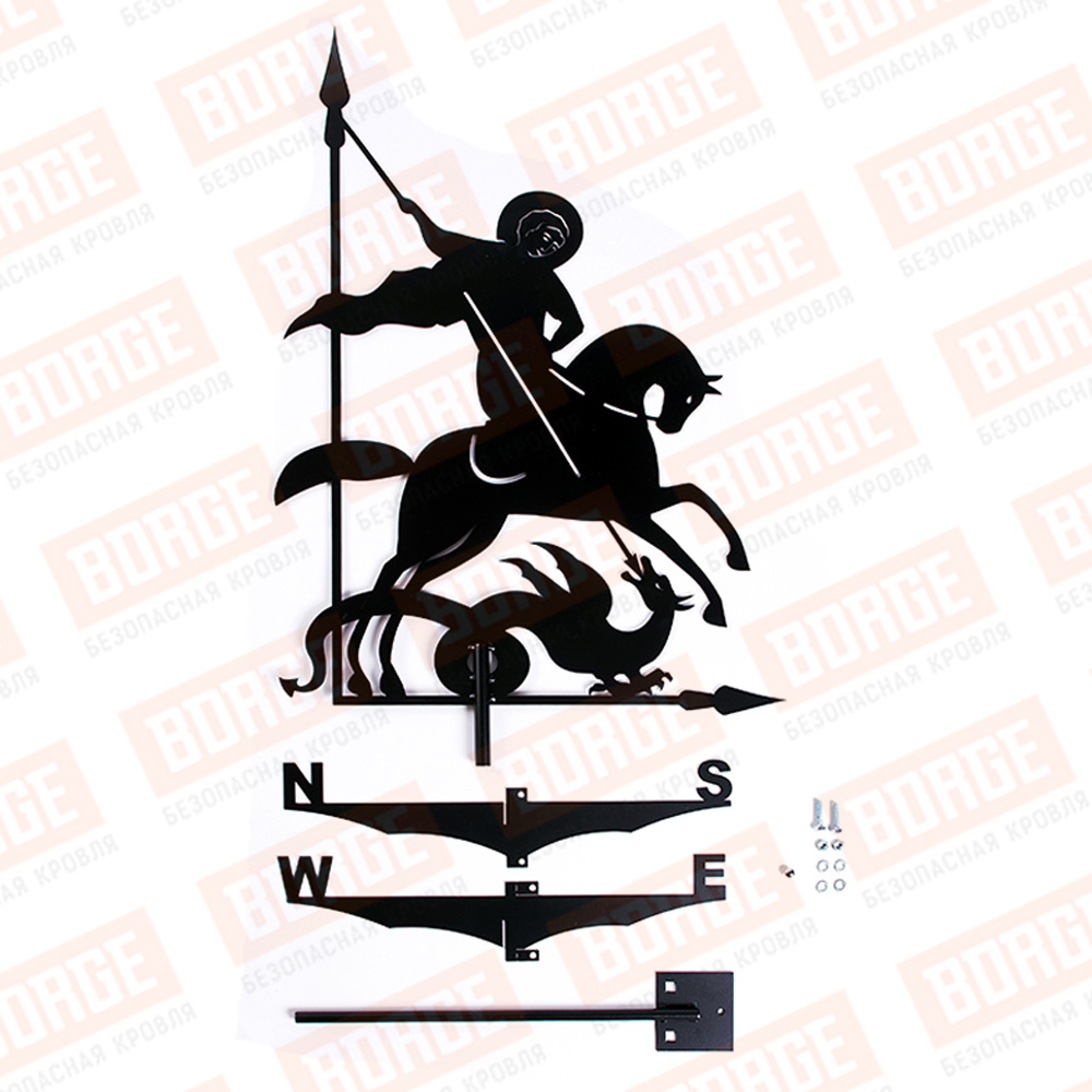 Флюгер BORGE Георгий Победоносец, 515х715мм, чёрный (RAL 9005 matt)