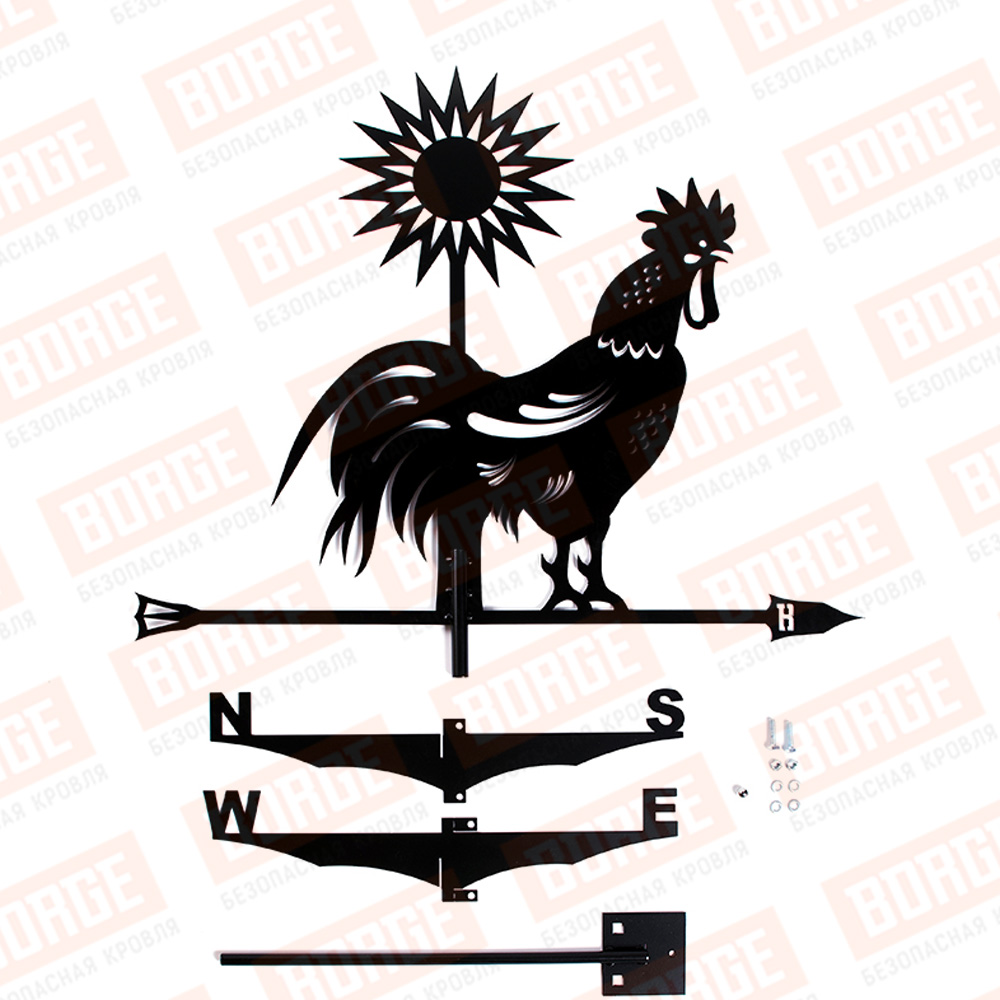 Флюгер BORGE Петух, 700х570мм, чёрный (RAL 9005 matt)