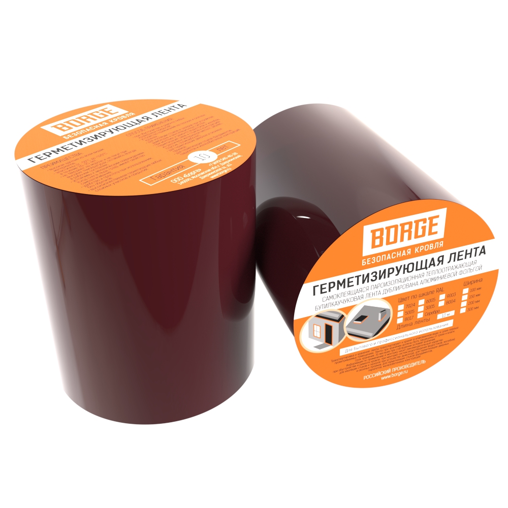 Лента герметизирующая BORGE 150мм*3м, красное вино (RAL 3005)