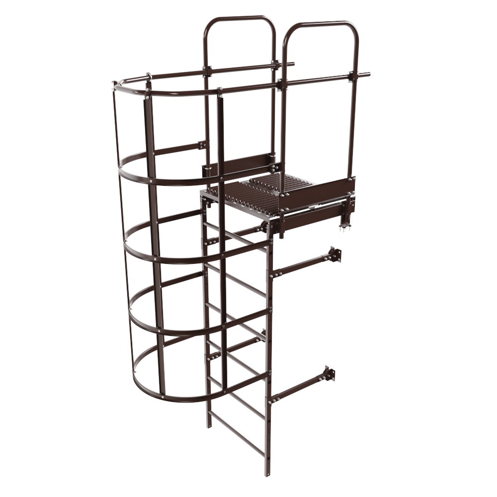 Лестница пожарная П1-2 с площадкой переходной 800х800мм BORGE, Н-2м, W-0.8м, оцинк., коричневый шоколад (RAL 8017)