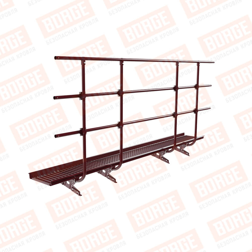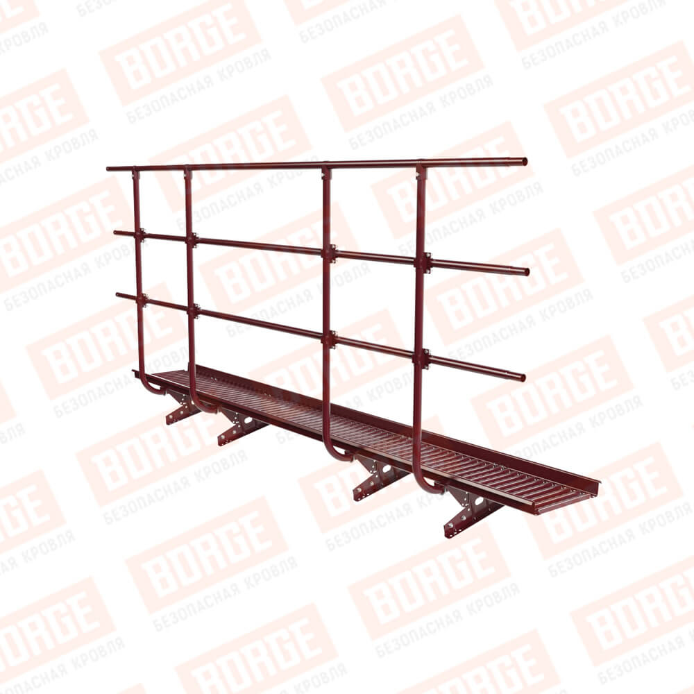 Мостик переходной с ограждением BORGE Н-120см, 3м, для фальцевой кровли, красное вино (RAL 3005)