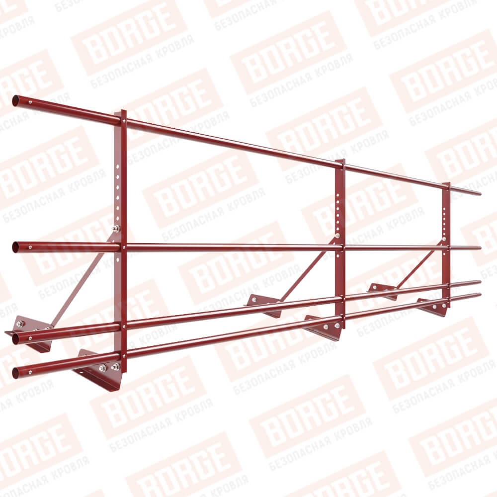 Ограждение декоративное NewLine H-60см, 3м, для фальц. кров., коричнево-красный (RAL 3011), с двумя доп. трубами