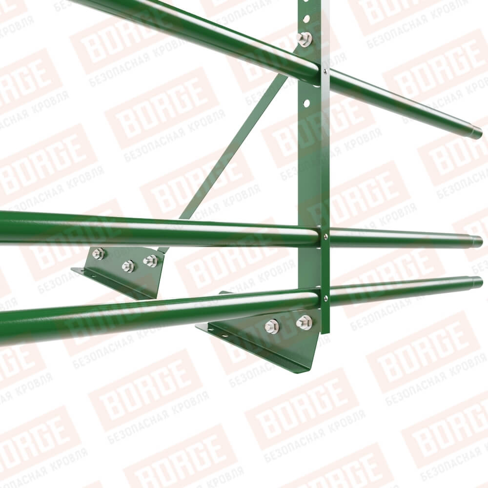 Ограждение декоративное NewLine H-60см, 3м, для фальц. кров., лиственно-зеленый (RAL 6002), с двумя доп. трубами