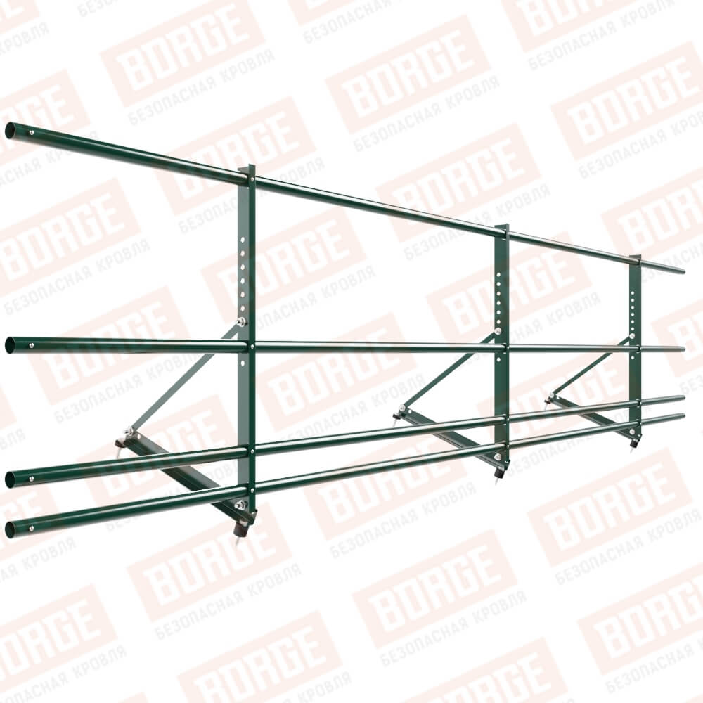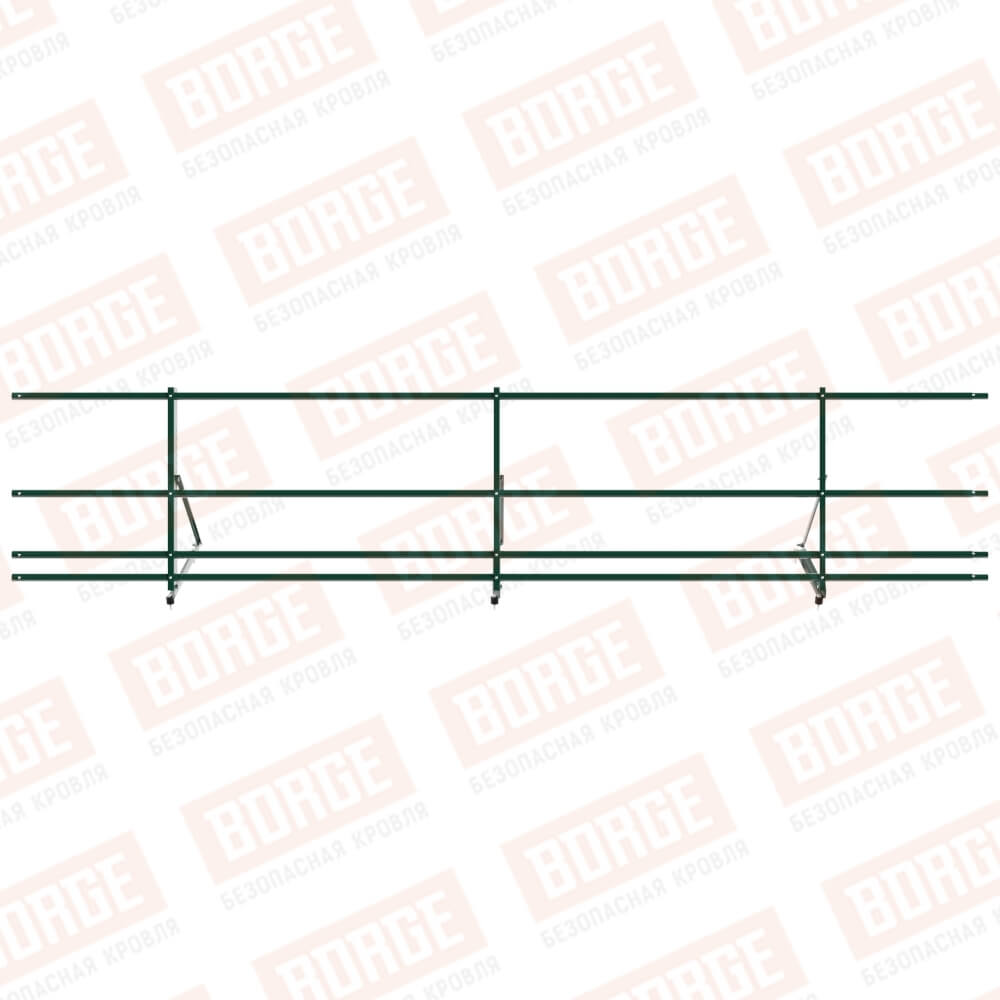 Ограждение декоративное NewLine H-60см, 3м, с двумя доп. трубами, для кровли из металлочерепицы, профнастила, материалов на основе битума, зеленый мох (RAL 6005)