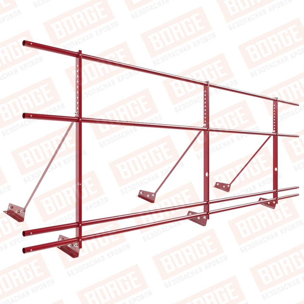 Ограждение декоративное NewLine H-90см, 3м, для фальц. кров., рубиново-красный (RAL 3003), с двумя доп. трубами