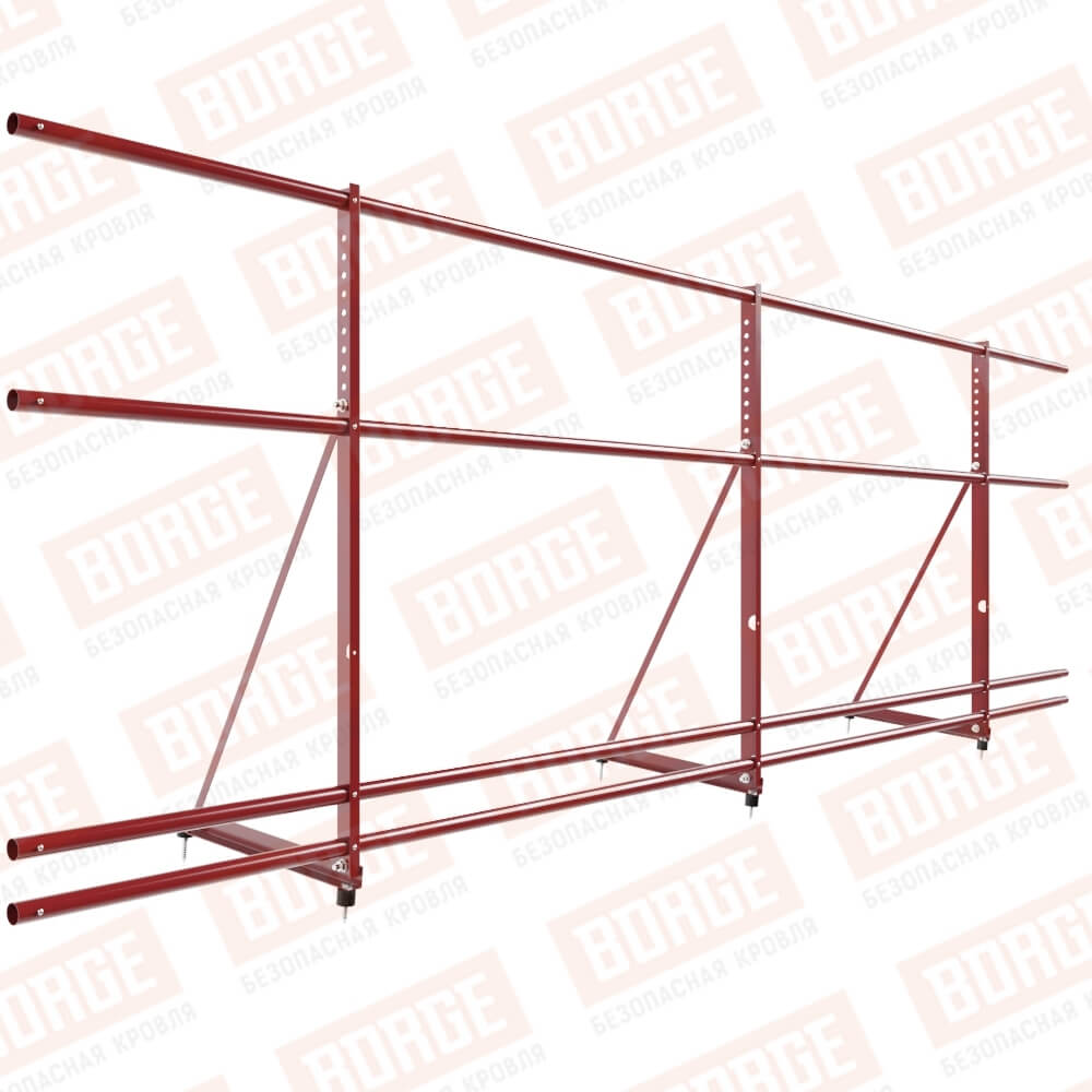 Ограждение декоративное NewLine H-90см, 3м, с двумя доп. трубами, для кровли из металлочерепицы, профнастила, материалов на основе битума, коричнево-красный (RAL 3011)