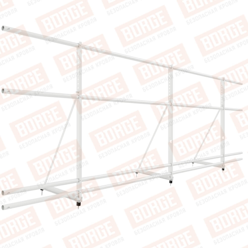 Ограждение декоративное NewLine H-90см, 3м, с двумя доп. трубами, для кровли из металлочерепицы, профнастила, материалов на основе битума, сигнально-белый (RAL 9003)