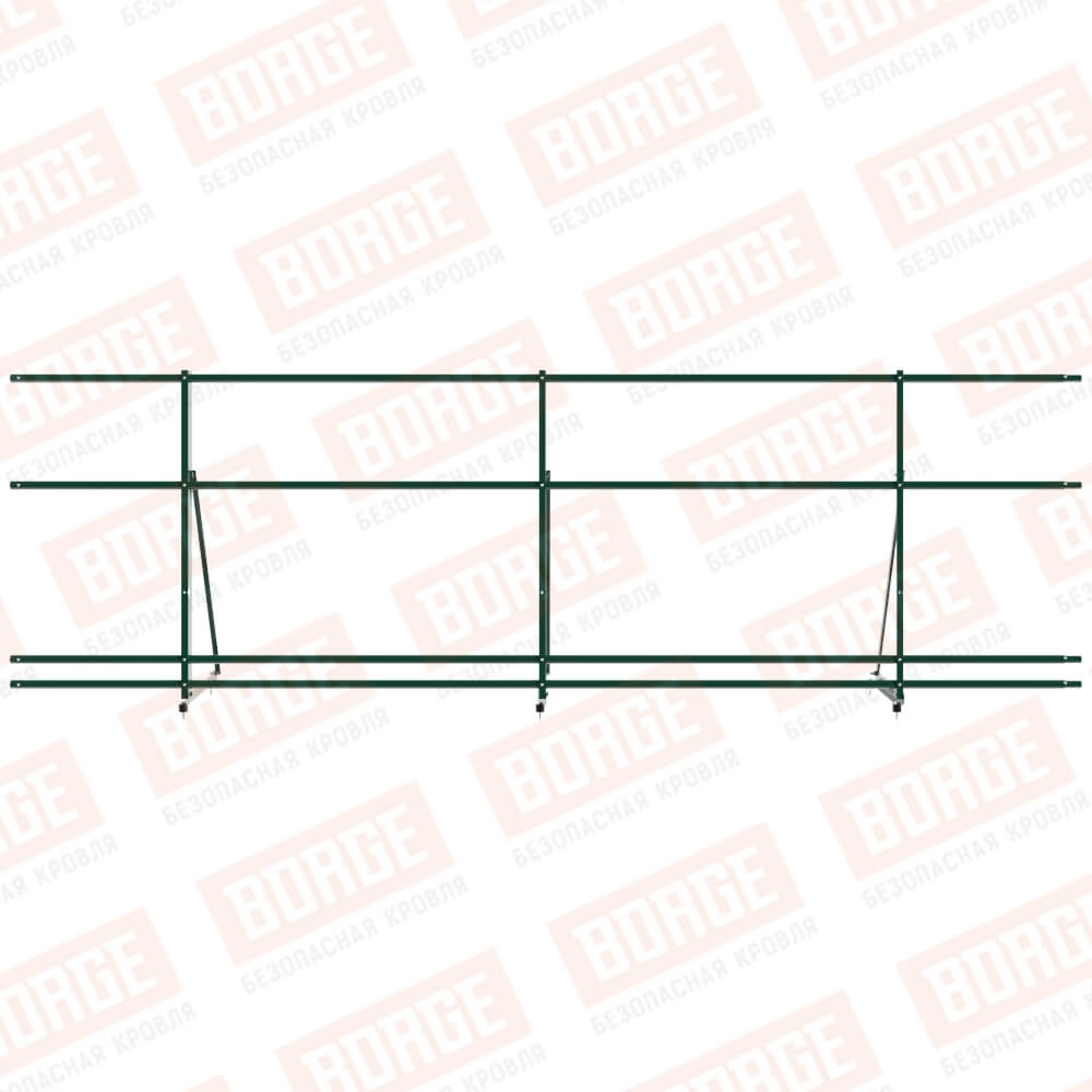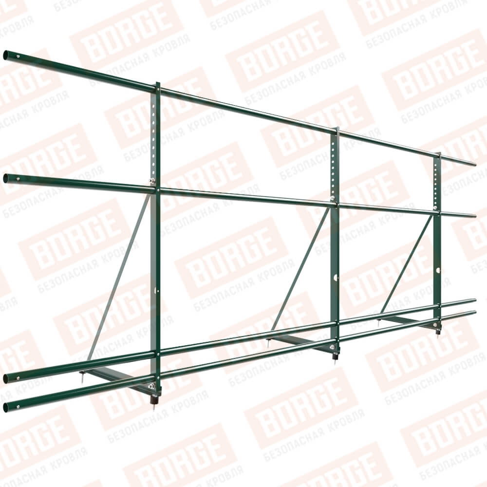 Ограждение декоративное NewLine H-90см, 3м, с двумя доп. трубами, для кровли из металлочерепицы, профнастила, материалов на основе битума, зеленый мох (RAL 6005)