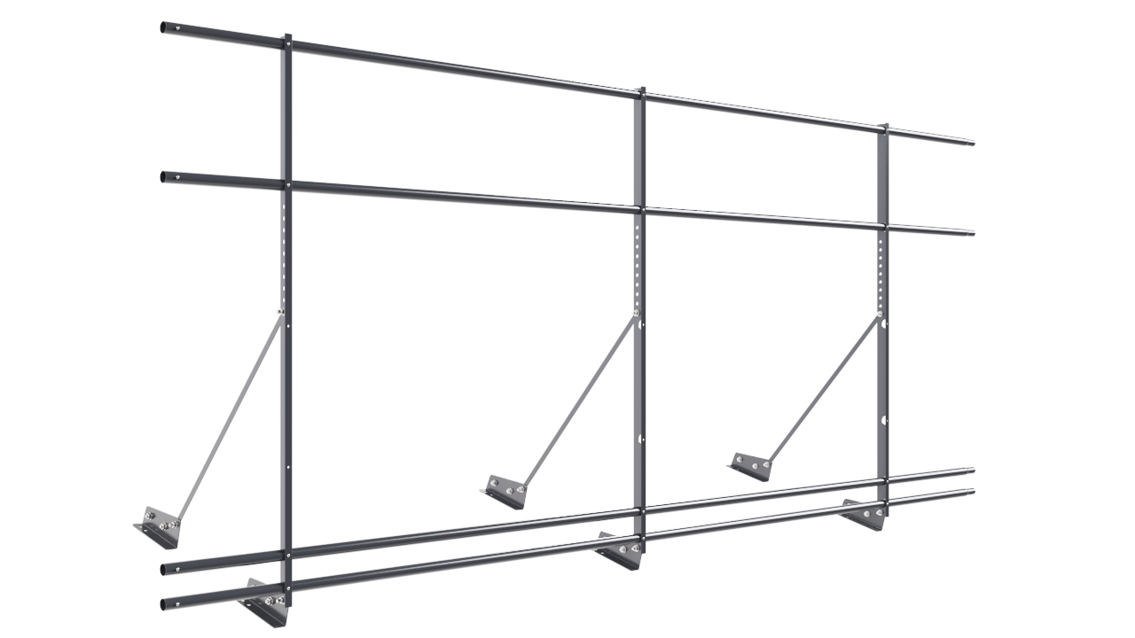 Ограждение кровельное NewLine H-120см, 3м, с двумя дополнительными трубами, для фальцевой кровли, серый графит (RAL 7024)