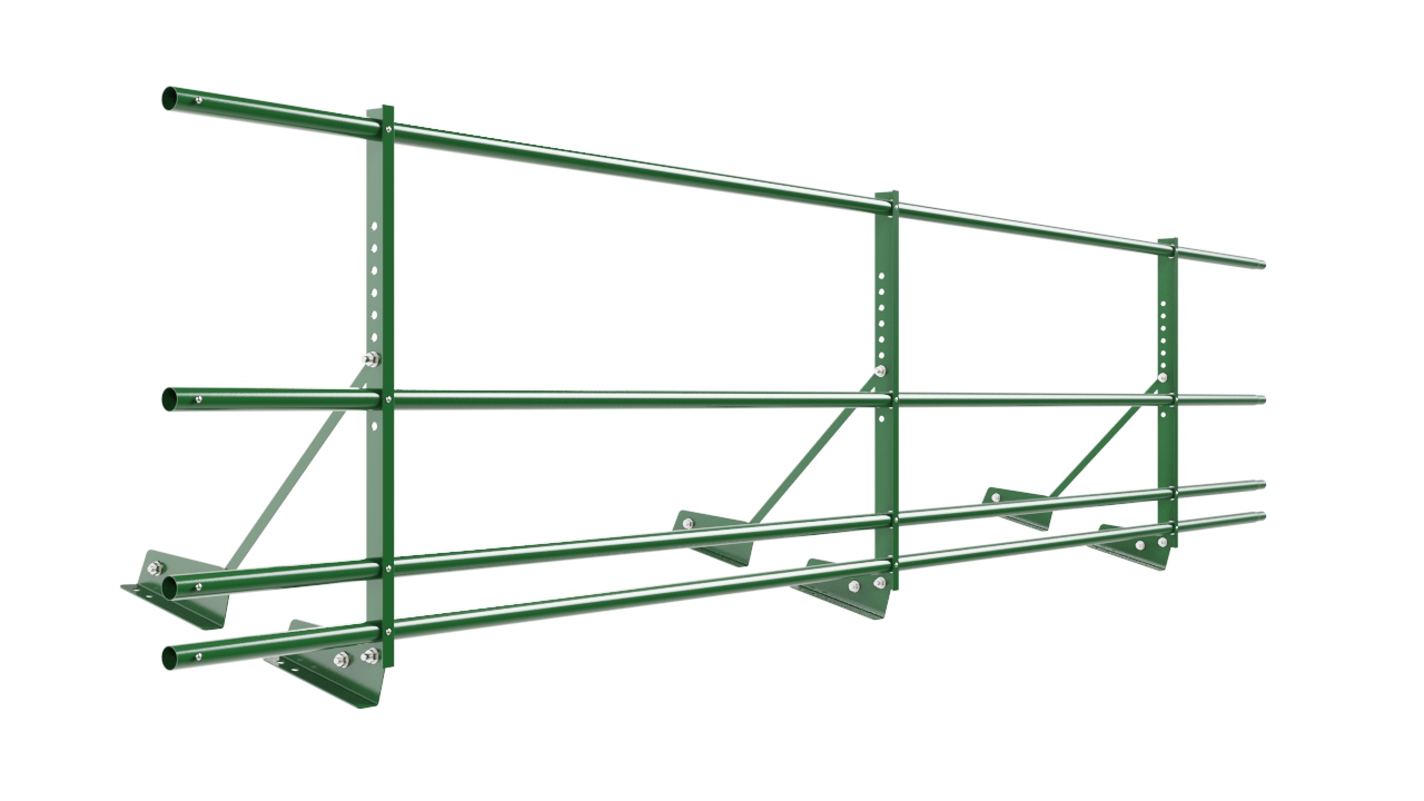 Ограждение кровельное NewLine H-60см, 3м, для фальц. кров., лиственно-зеленый (RAL 6002), с двумя доп. трубами
