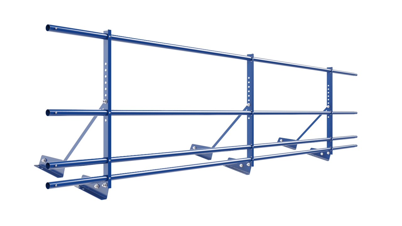 Ограждение кровельное NewLine H-60см, 3м, для фальц. кров., сигнально-синий (RAL 5005), с двумя доп. трубами