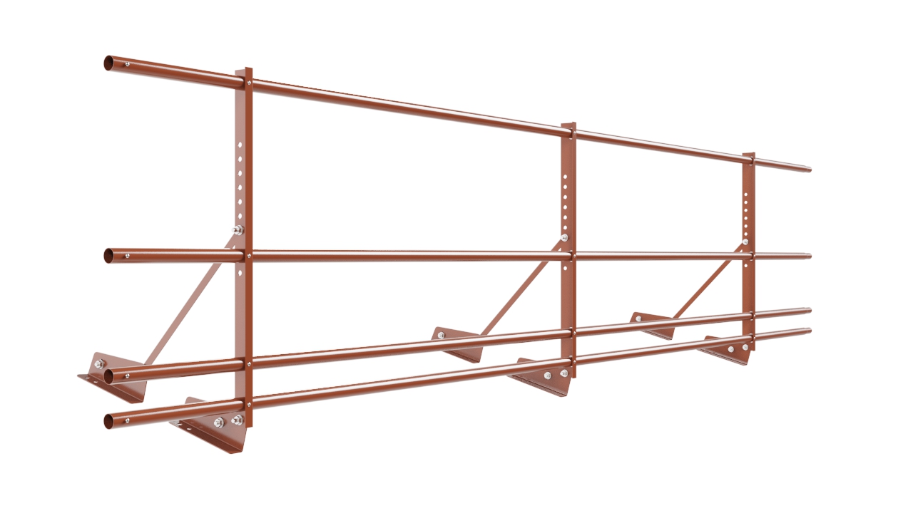 Ограждение кровельное Новая Линия/NewLine H-60см, 3м, с двумя дополнительными трубами, для фальцевой кровли, терракотовый (RAL 8004)