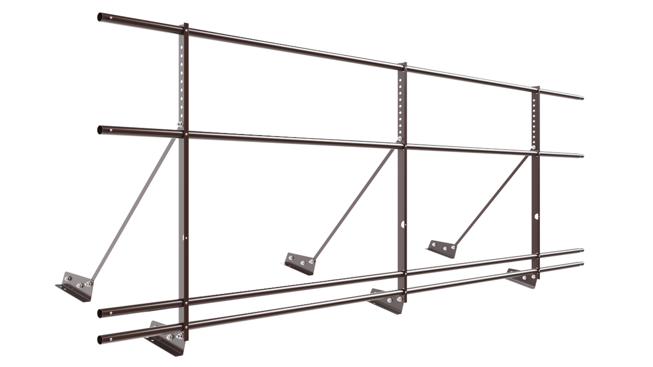 Ограждение кровельное NewLine H-90см, 3м, с двумя дополнительными трубами, для фальцевой кровли, коричневый шоколад (RAL 8017)