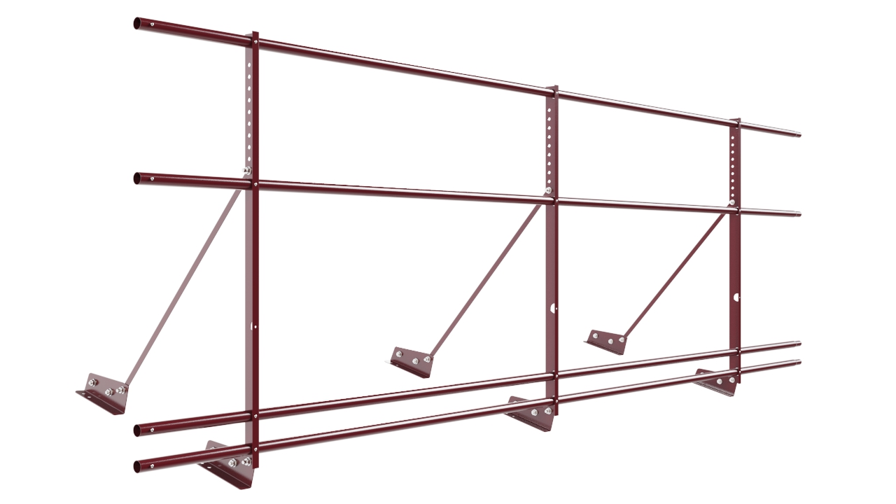 Ограждение кровельное Новая Линия/NewLine H-90см, 3м, с двумя дополнительными трубами, для фальцевой кровли, красное вино (RAL 3005)
