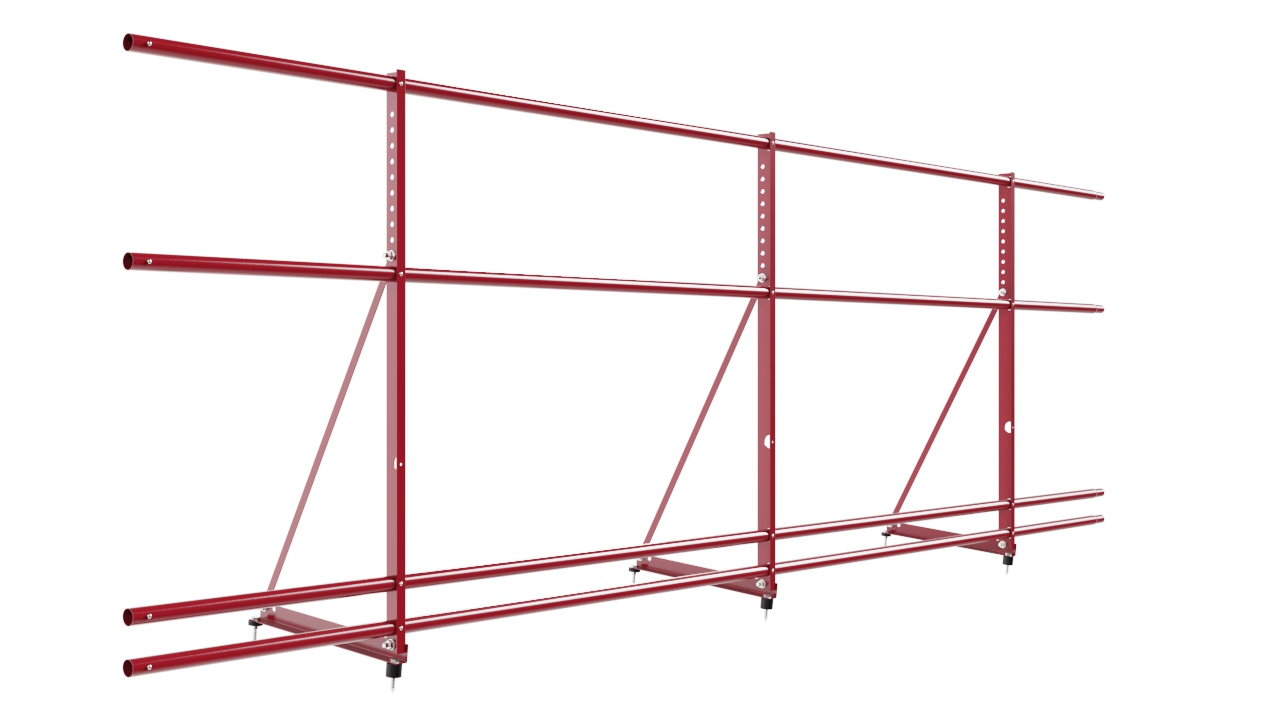 Ограждение кровельное Новая Линия/NewLine H-90см, 3м, с двумя дополнительными трубами, для кровли из металлочерепицы, профнастила, материалов на основе битума, рубиново-красный (RAL 3003)