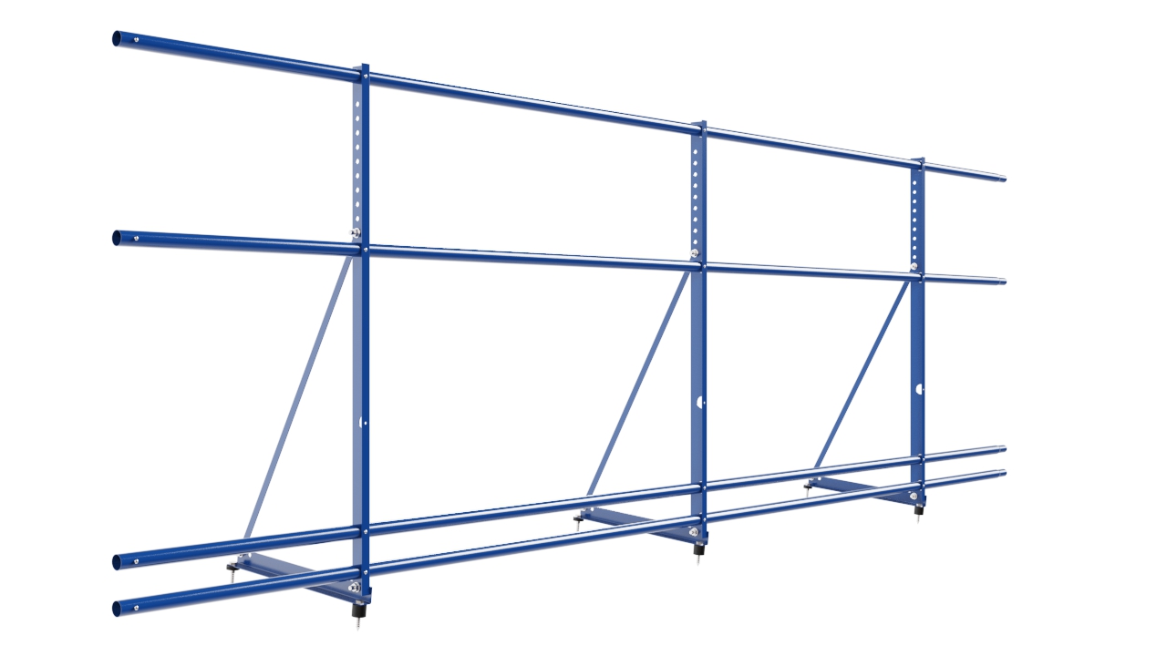 Ограждение кровельное Новая Линия/NewLine H-90см, 3м, с двумя дополнительными трубами, для кровли из металлочерепицы, профнастила, материалов на основе битума, сигнально-синий (RAL 5005)