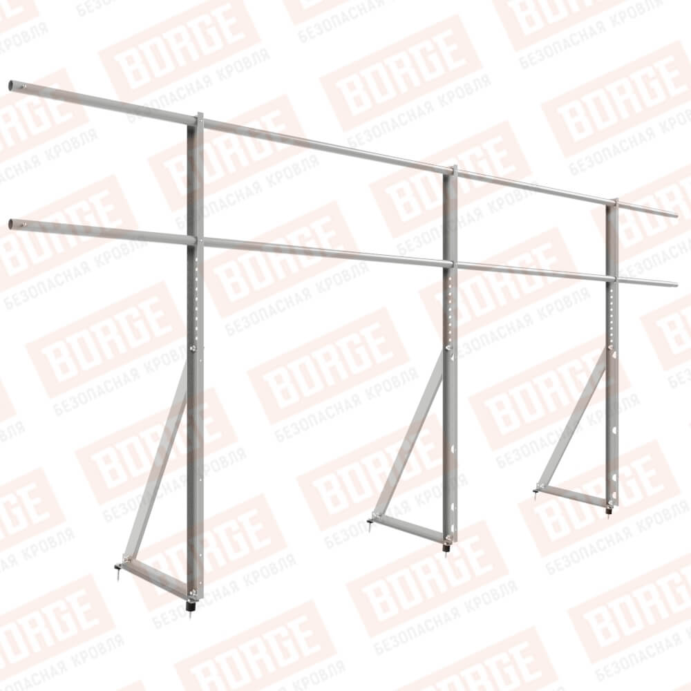 Ограждение кровельное Русский Рубеж H-120см, 3м, для кровли из металлочерепицы, профнастила, материалов на основе битума, бело-алюминиевый (RAL 9006)