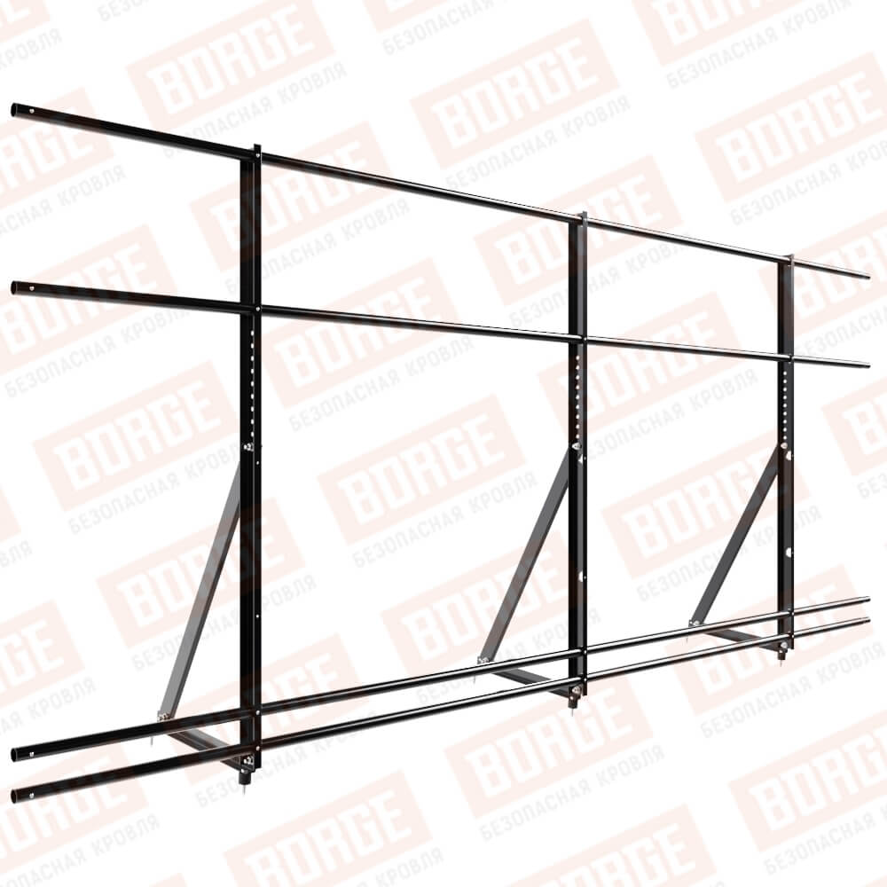 Ограждение кровельное Русский Рубеж H-120см, 3м, с двумя доп. трубами, для кровли из металлочерепицы, профнастила, материалов на основе битума, чёрный (RAL 9005)
