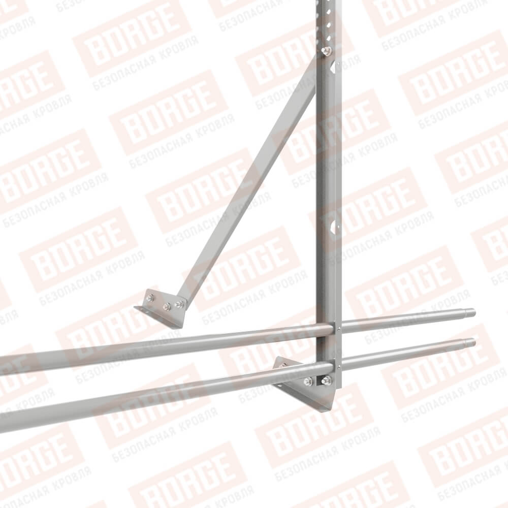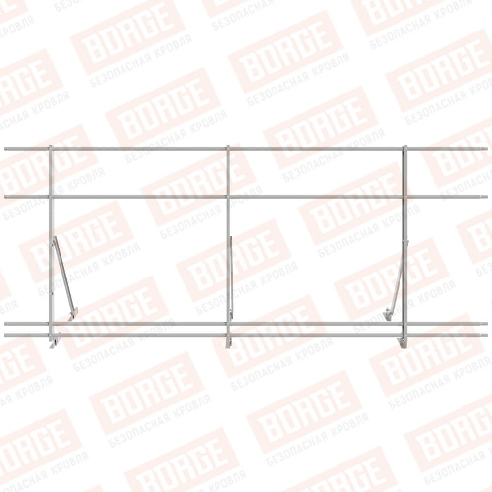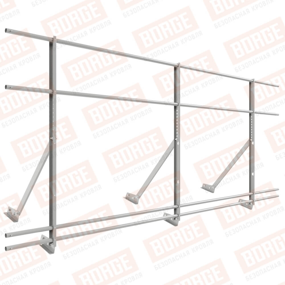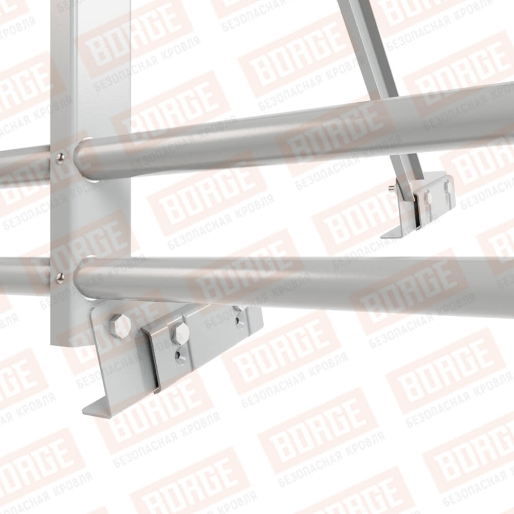 Ограждение кровельное Русский Рубеж H-120см, 3м, для фальцевой кровли, бело-алюминиевый (RAL 9006), с двумя доп. трубами