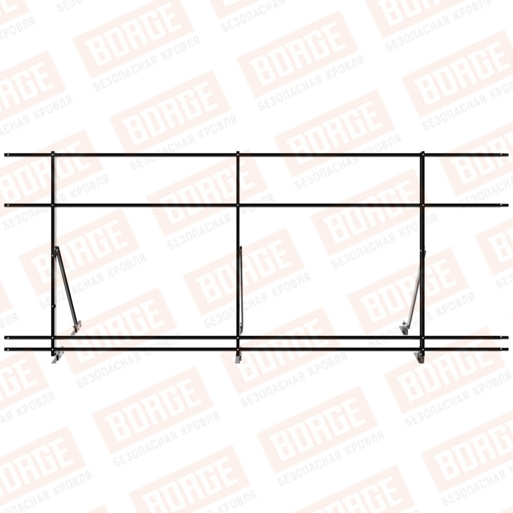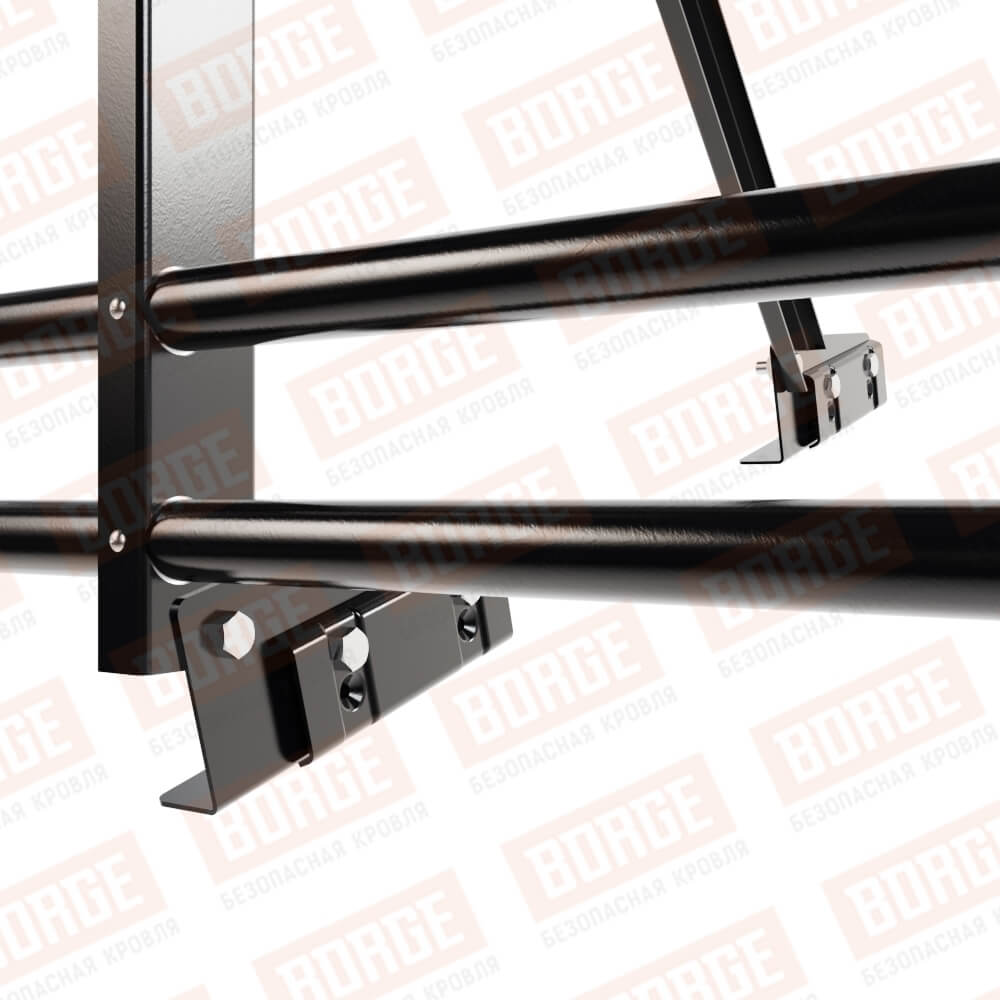 Ограждение кровельное Русский Рубеж H-120см, 3м, с двумя доп. трубами, для фальцевой кровли, чёрный (RAL 9005)