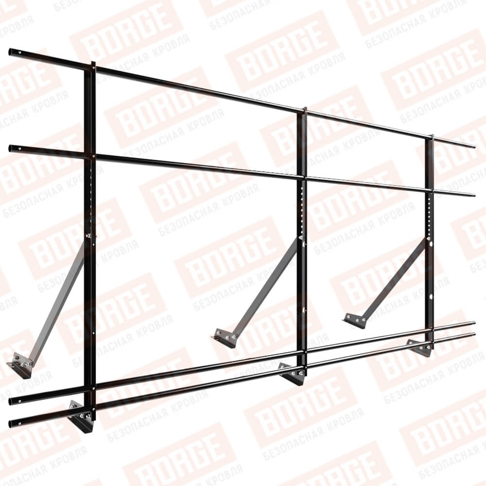 Ограждение кровельное Русский Рубеж H-120см, 3м, для фальцевой кровли, чёрный (RAL 9005), с двумя доп. трубами