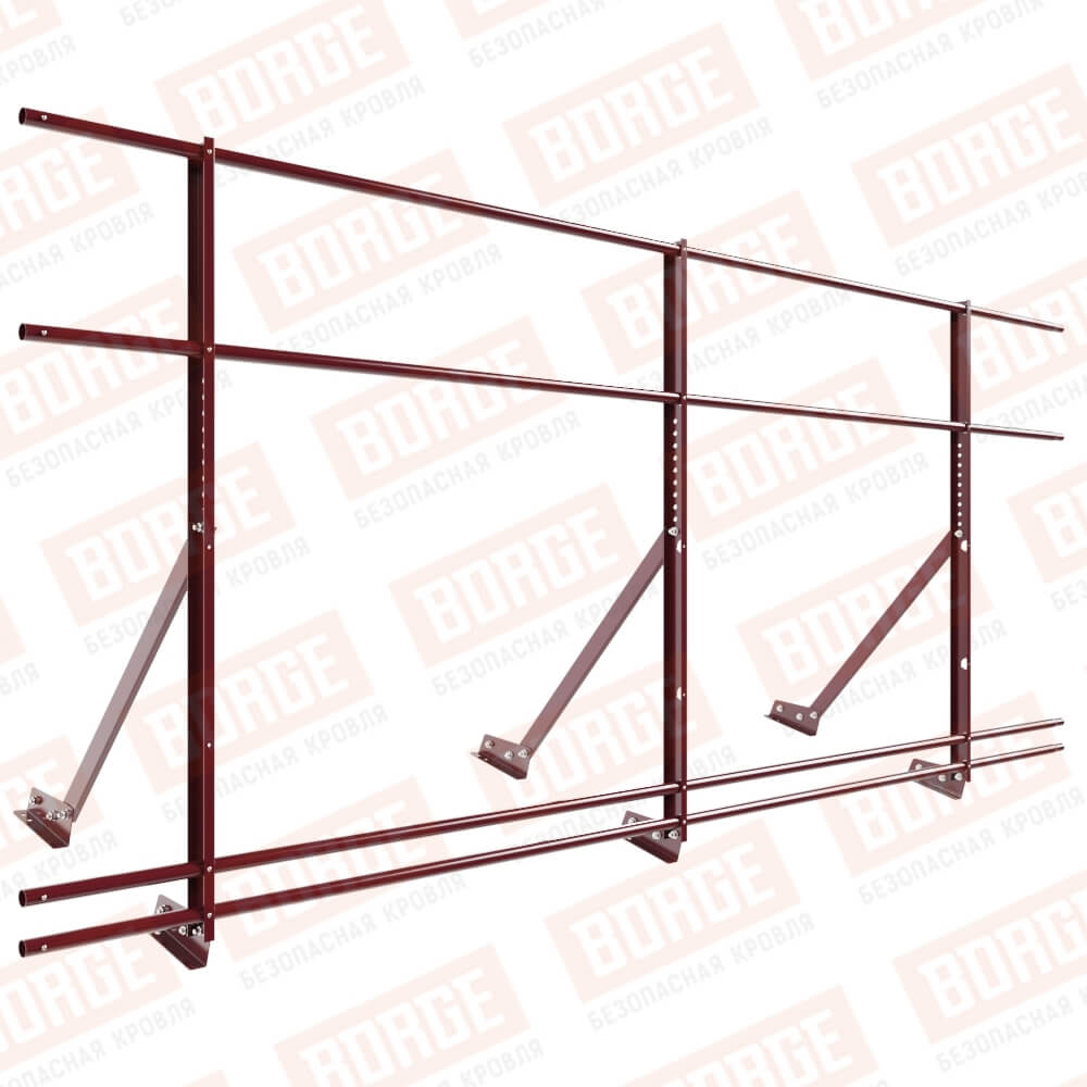 Ограждение кровельное Русский Рубеж H-120см, 3м, для фальцевой кровли, красное вино (RAL 3005), с двумя доп. трубами