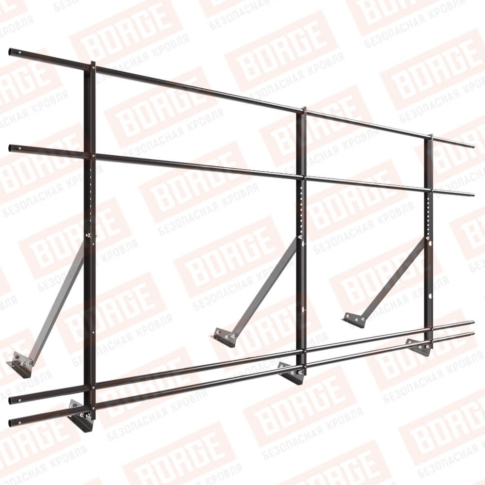 Ограждение кровельное Русский Рубеж H-120см, 3м, с двумя доп. трубами, для фальцевой кровли, окрашенный (NL-805)
