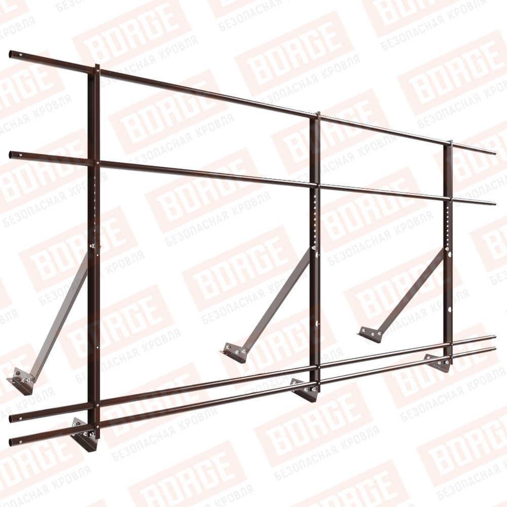 Ограждение кровельное Русский Рубеж H-120см, 3м, с двумя доп. трубами, для фальцевой кровли, окрашенный (NL-807)