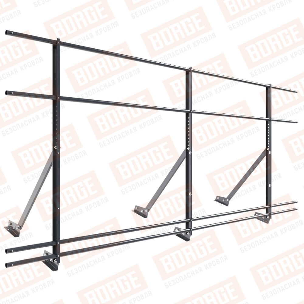 Ограждение кровельное Русский Рубеж H-120см, 3м, для фальцевой кровли, серый графит (RAL 7024), с двумя доп. трубами