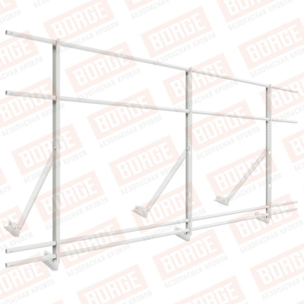 Ограждение кровельное Русский Рубеж H-120см, 3м, с двумя доп. трубами, для фальцевой кровли, сигнально-белый (RAL 9003)