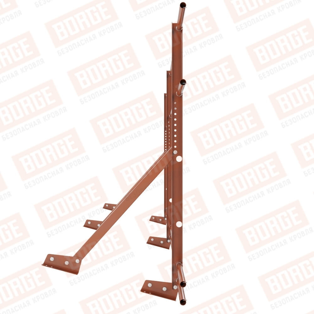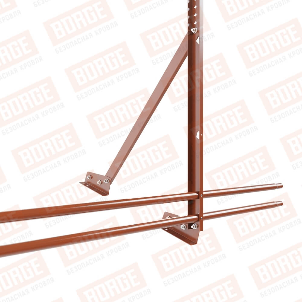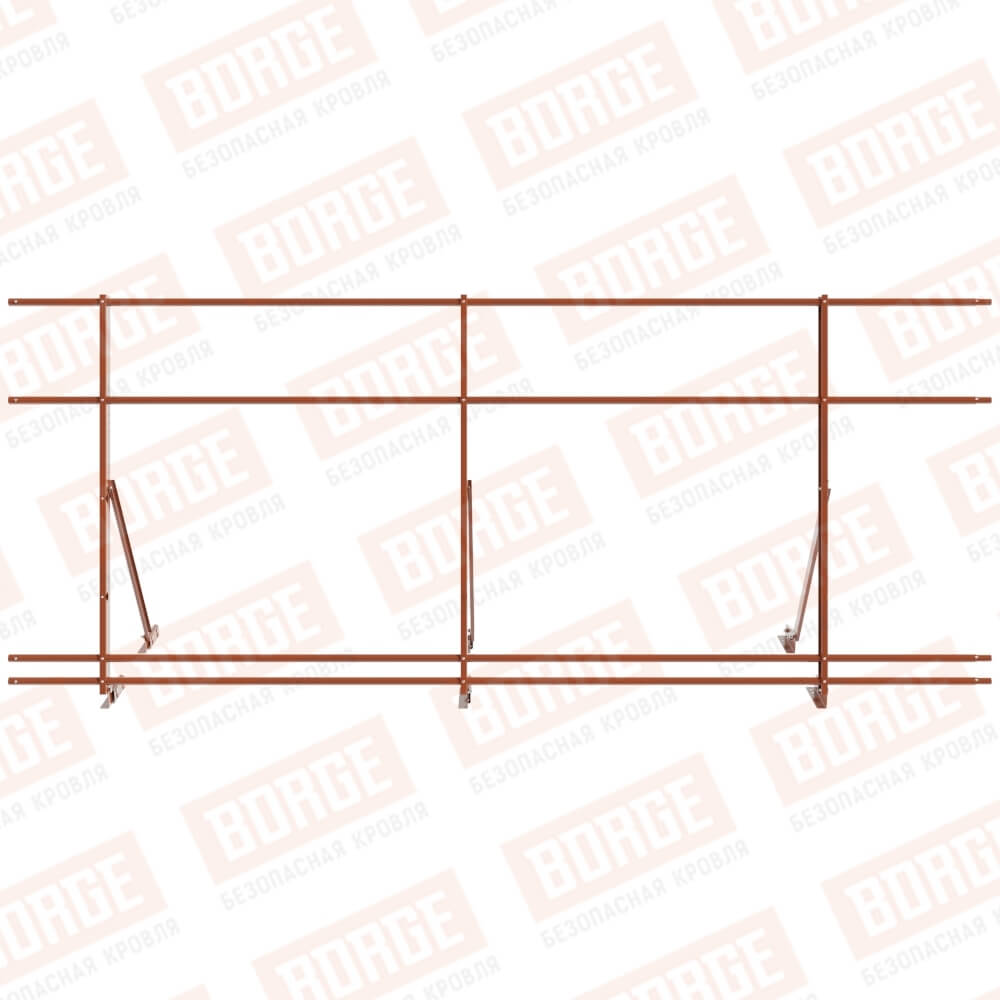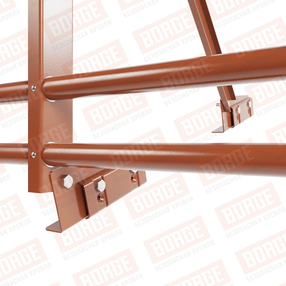 Ограждение кровельное Русский Рубеж H-120см, 3м, для фальцевой кровли, терракотовый (RAL 8004), с двумя доп. трубами