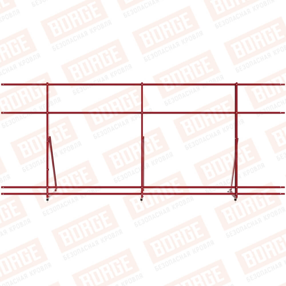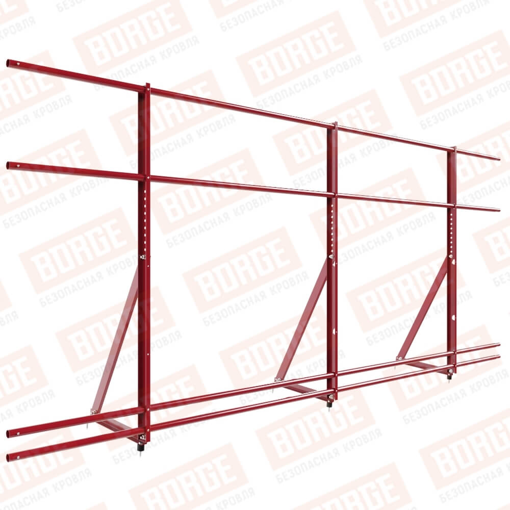 Ограждение кровельное Русский Рубеж H-120см, 3м, с двумя доп. трубами, для кровли из металлочерепицы, профнастила, материалов на основе битума, рубиново-красный (RAL 3003)