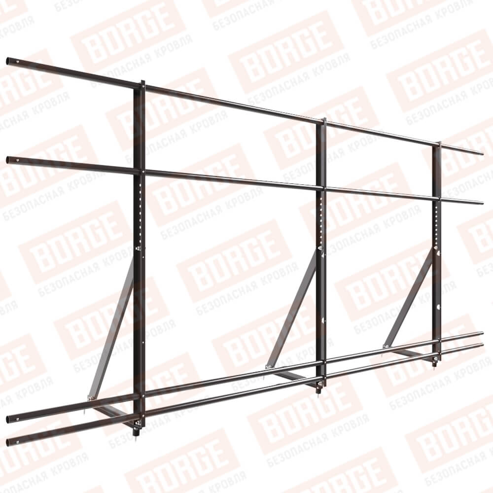 Ограждение кровельное Русский Рубеж H-120см, 3м, с двумя доп. трубами, для кровли из металлочерепицы, профнастила, материалов на основе битума, серо-коричневый (RR 32)