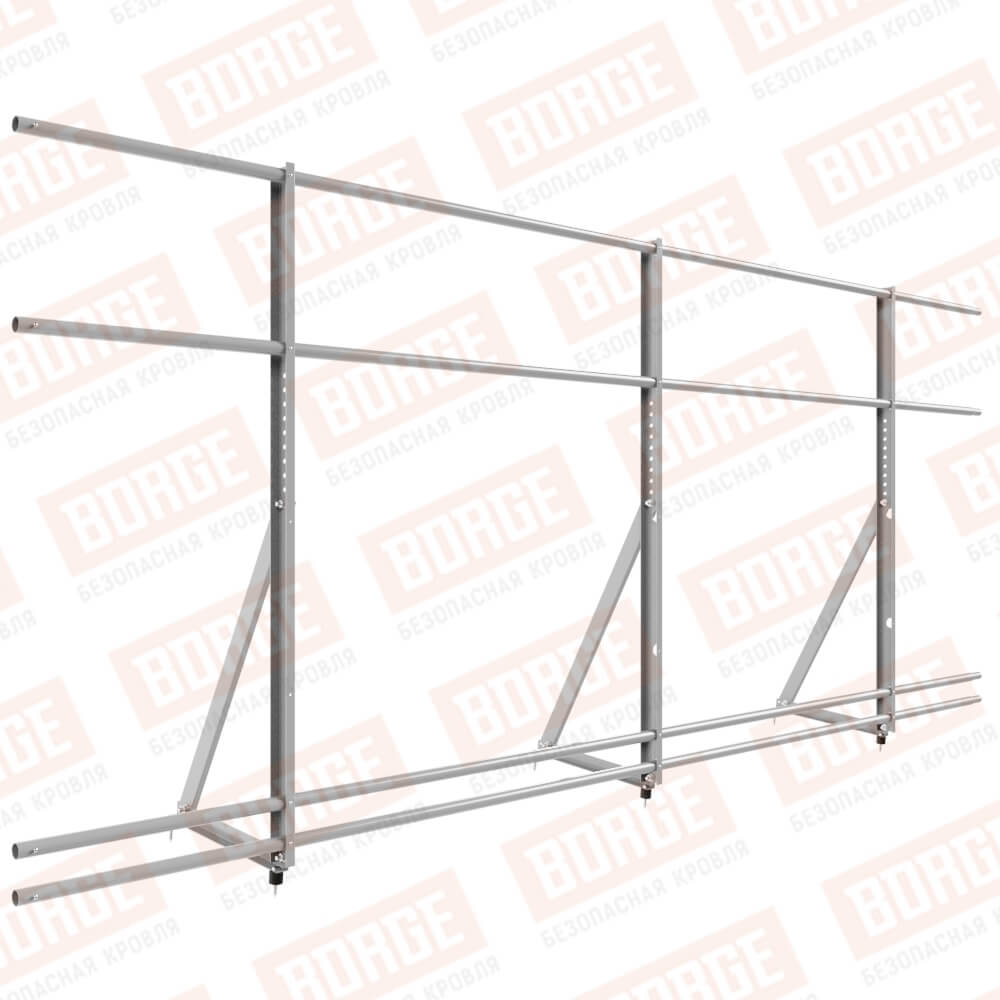 Ограждение кровельное Русский Рубеж H-120см, 3м, с двумя доп. трубами, для кровли из металлочерепицы, профнастила, материалов на основе битума, сигнально-серый (RAL 7004)