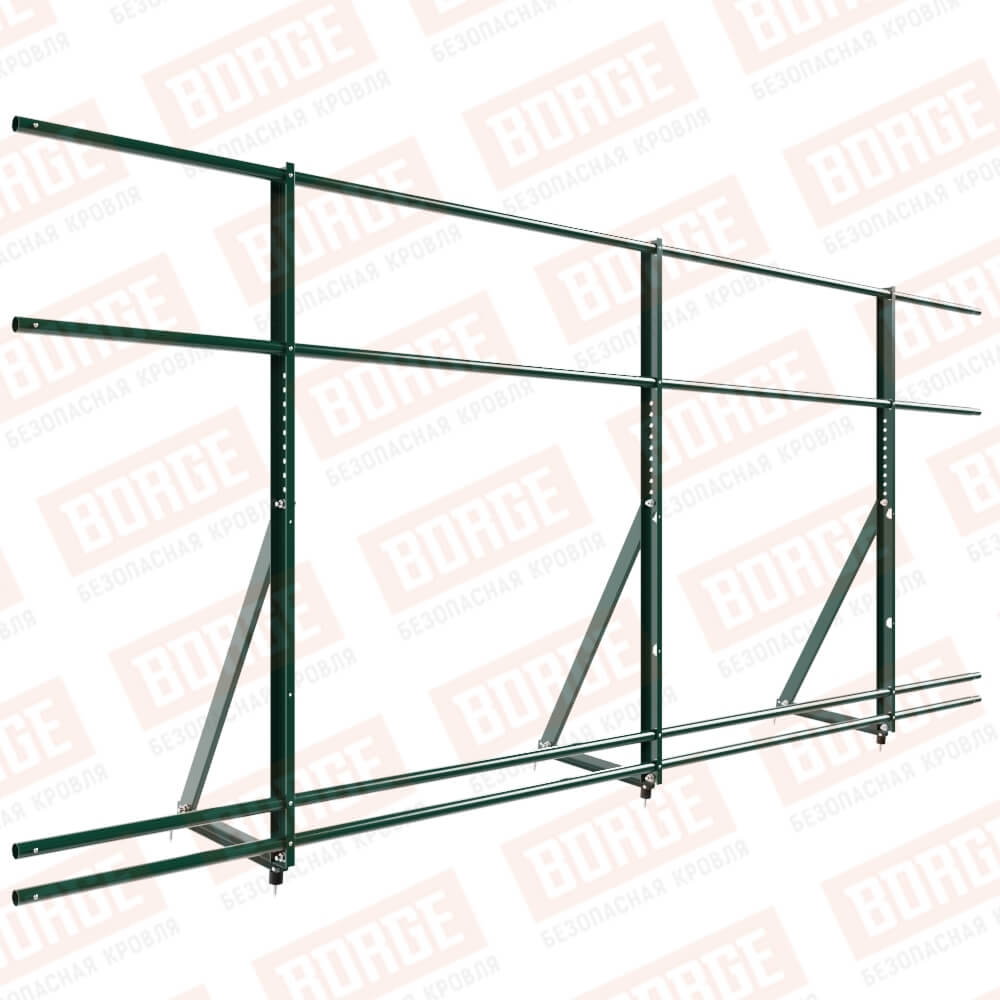Ограждение кровельное Русский Рубеж H-120см, 3м, с двумя доп. трубами, для кровли из металлочерепицы, профнастила, материалов на основе битума, зеленый мох (RAL 6005)