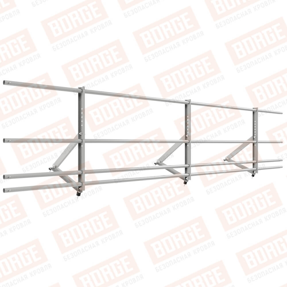 Ограждение кровельное Русский Рубеж H-60см, 3м, бело-алюминиевый (RAL 9006), с двумя доп. трубами