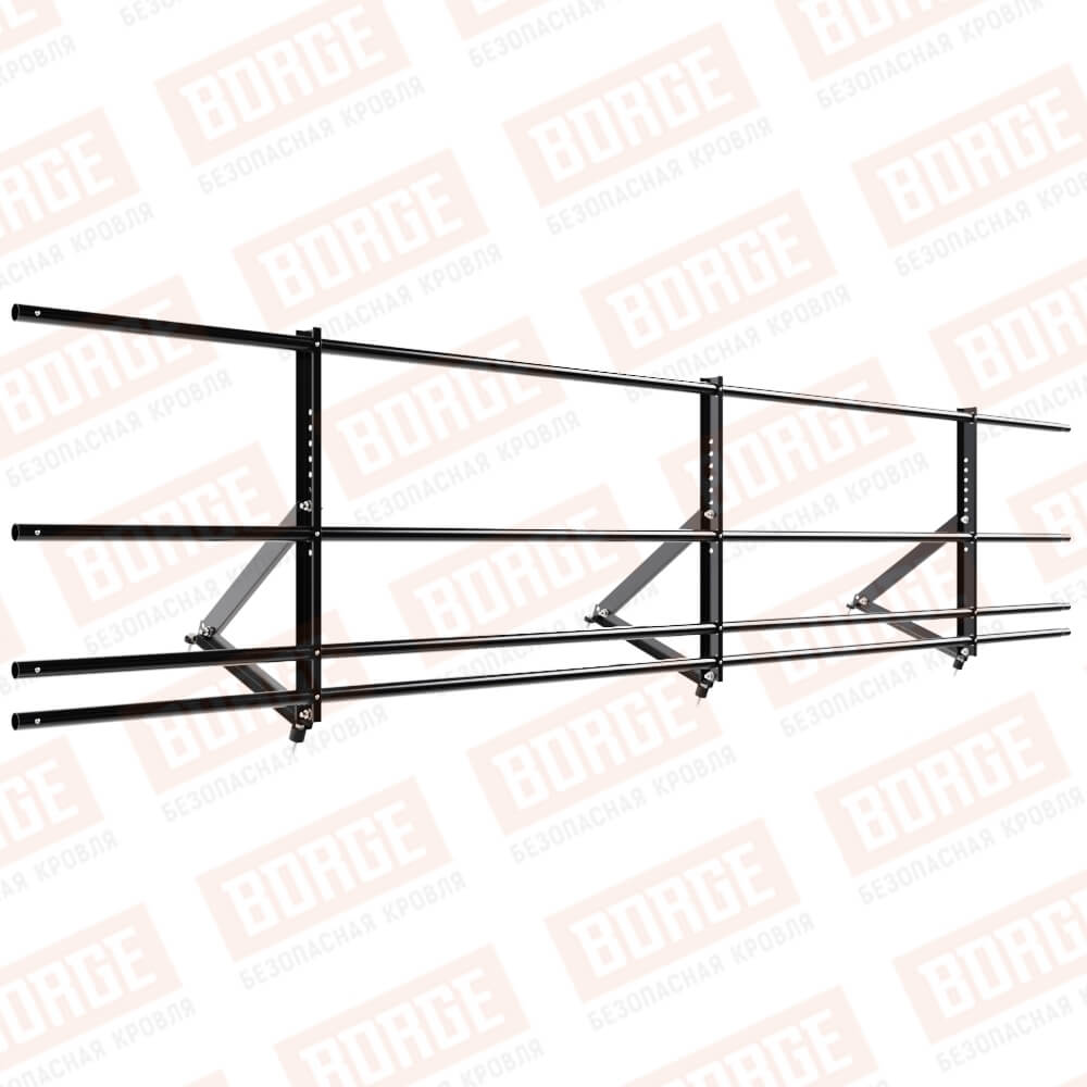Ограждение кровельное Русский Рубеж H-60см, 3м, с двумя доп. трубами, для кровли из металлочерепицы, профнастила, материалов на основе битума, чёрный (RAL 9005)