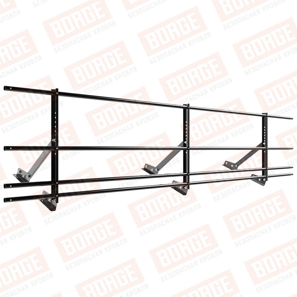 Ограждение кровельное Русский Рубеж H-60см, 3м, с двумя доп. трубами, для фальцевой кровли, чёрный (RAL 9005)