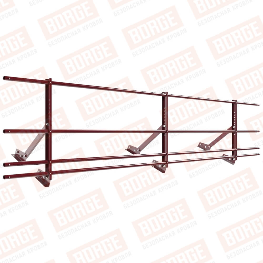 Ограждение кровельное Русский Рубеж H-60см, 3м, для фальцевой кровли, красное вино (RAL 3005), с двумя доп. трубами
