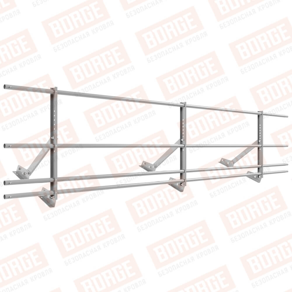 Ограждение кровельное Русский Рубеж H-60см, 3м, для фальцевой кровли, сигнально-серый (RAL 7004), с двумя доп. трубами
