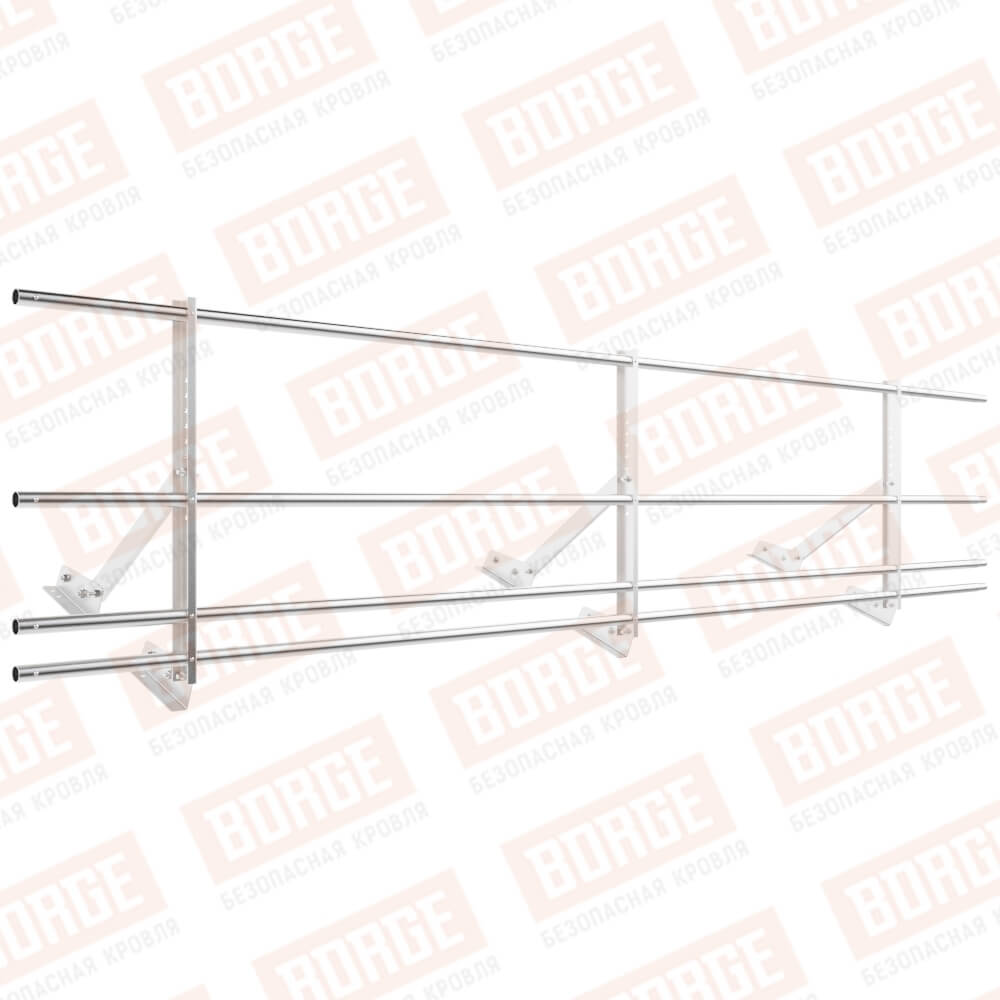 Ограждение кровельное Русский Рубеж H-60см, 3м, для фальцевой кровли, цинк, с дв. доп. труб.