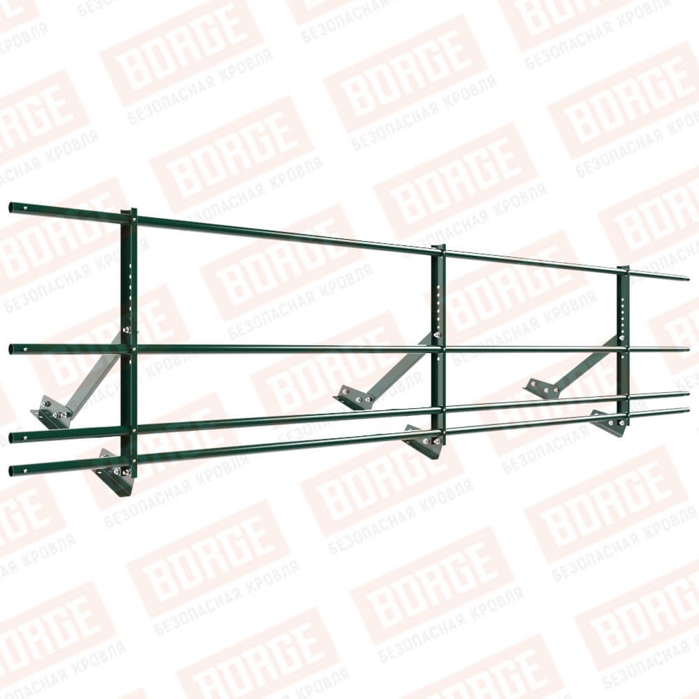 Ограждение кровельное Русский Рубеж H-60см, 3м, с двумя доп. трубами, для фальцевой кровли, зеленый мох (RAL 6005)