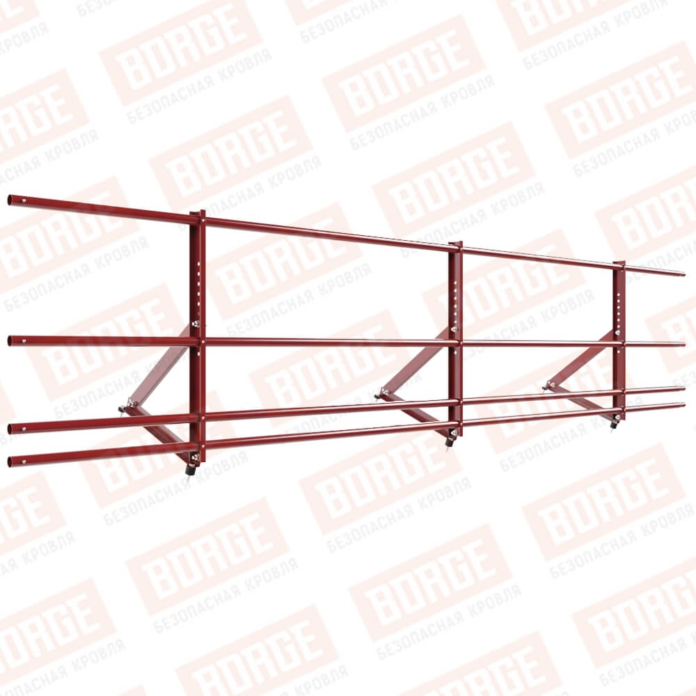 Ограждение кровельное Русский Рубеж H-60см, 3м, коричнево-красный (RAL 3011), с двумя доп. трубами