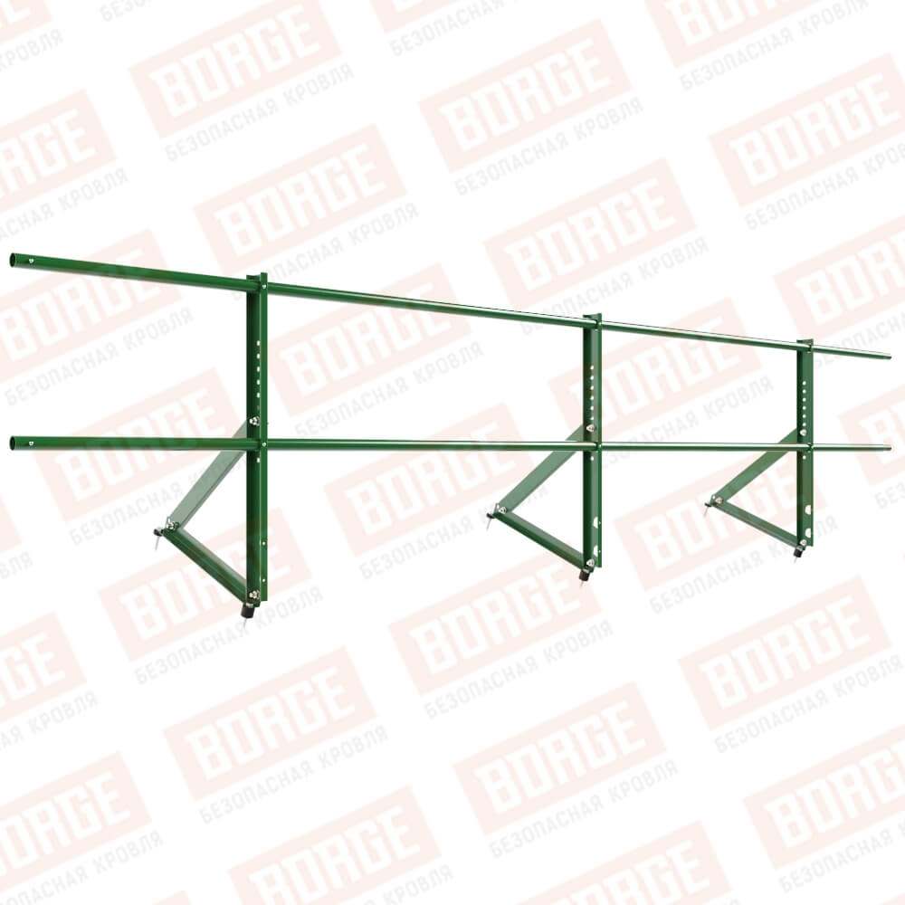 Ограждение кровельное Русский Рубеж H-60см, 3м, для кровли из металлочерепицы, профнастила, материалов на основе битума, лиственно-зеленый (RAL 6002)