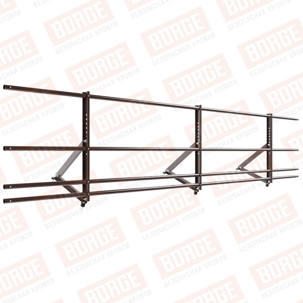 Ограждение кровельное Русский Рубеж H-60см, 3м, с двумя доп. трубами, для кровли из металлочерепицы, профнастила, материалов на основе битума, окрашенный (NL-807)