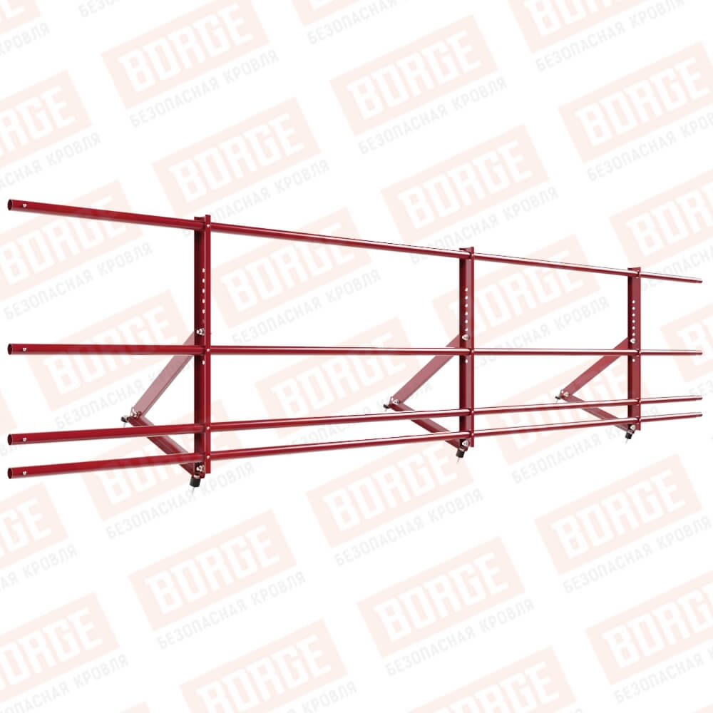 Ограждение кровельное Русский Рубеж H-60см, 3м, с двумя доп. трубами, для кровли из металлочерепицы, профнастила, материалов на основе битума, рубиново-красный (RAL 3003)