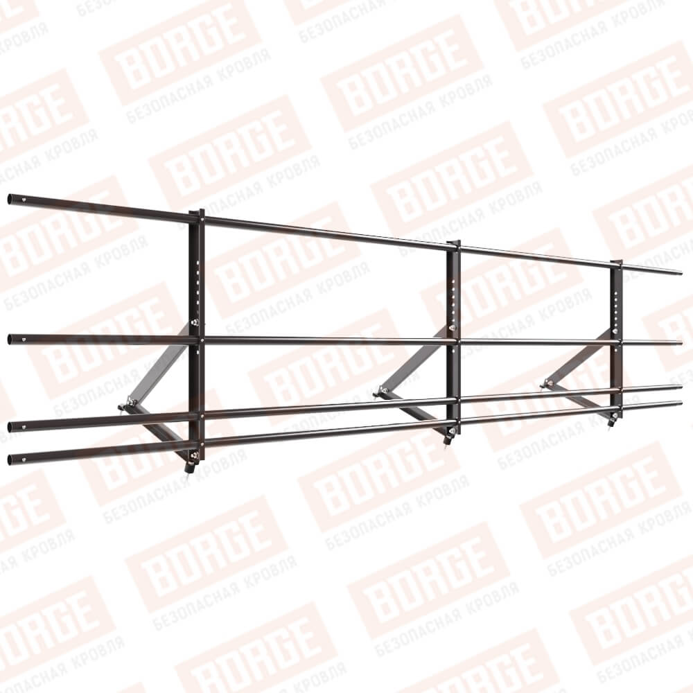 Ограждение кровельное Русский Рубеж H-60см, 3м, серо-коричневый (RAL 8019), с двумя доп. трубами