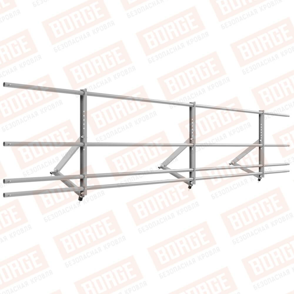 Ограждение кровельное Русский Рубеж H-60см, 3м, с двумя доп. трубами, для кровли из металлочерепицы, профнастила, материалов на основе битума, сигнально-серый (RAL 7004)